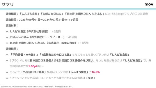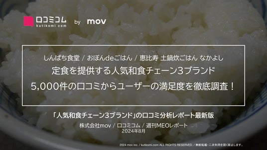 AI店舗支援SaaS「口コミコム」を運営する株式会社mov(代表取締役:渡邊 誠、本社:東京都渋谷区、以下mov)では、『口コミコム』の分析機能を用いたレポートを公開しました。