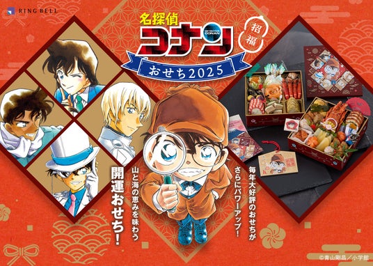 今年連載30周年を迎えた大人気の本格推理漫画『名探偵コナン』の魅力を存分に詰め込んだ大満足のおせちに加え、青山剛昌先生からの年賀状や新登場の絵馬もセットでお届け!ますますパワーアップした「名探偵コナンおせち2025」は、2024年8月28日よりリンベルWEBサイトにて予約受付を開始します。