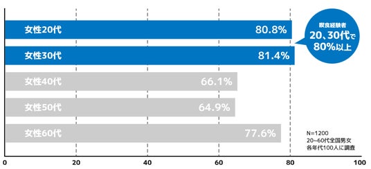・認知者における喫食経験率は、女性20~30代で8割を超える。