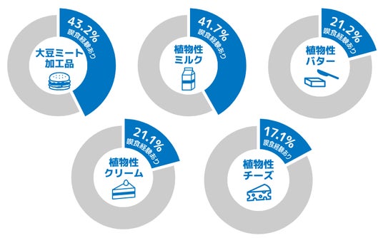 次いで「植物性ミルク(豆乳、アーモンドミルクなど)」、「植物性バター」、「植物性クリーム」と続く。