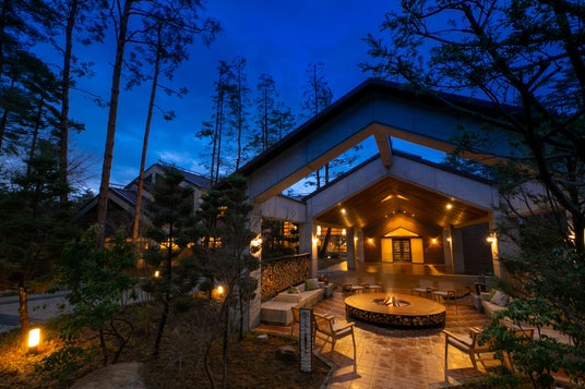 エントランス前にある「星見暖炉」 夜空の星を眺めたり、焚火を見ながら特別な時間が過ごせます