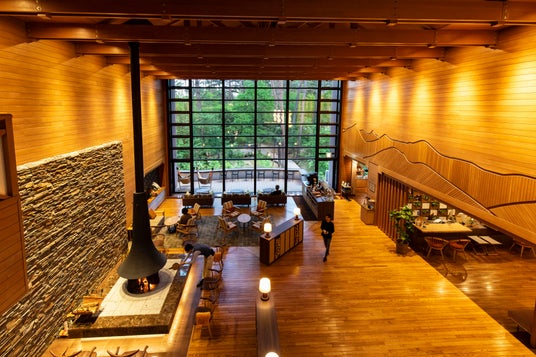 暖炉ラウンジには、アートの街安曇野を感じるアトリエのような雰囲気が漂います