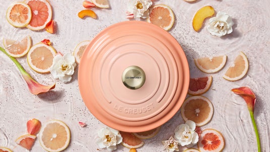 桃をイメージした優しく淡いトーンの温かみのあるカラーリングは、今のシーズンはもちろんのこと、オールシーズンどんなシチュエーションのテーブルコーディネートにも馴染みやすく、柔らかな雰囲気を添えます。「ペッシュ」カラーの新色は、2024年9月4日(水)より、ル・クルーゼ公式オンラインショップ、一部店舗限定でのお取り扱いとなります。