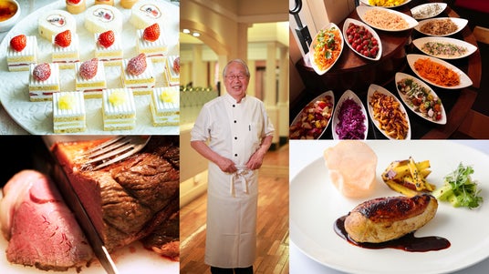 「肉・海鮮・スイーツ」をテーマに週末限定で開催中の王道グルメビュッフェ「SATSUKIスイーツ&デリシャスビュッフェ」に熊谷喜八シェフ監修のメニューが登場。特製ダレに漬けたチキンをジューシーに仕上げた「若鶏の北京ダック風」や、焦がしバターの香りが漂う「豚ロース肉のエスカロップ網焼きカフェドパリ風」など、熊谷喜八シェフの世界観を再現したメニューをお愉しみください。
