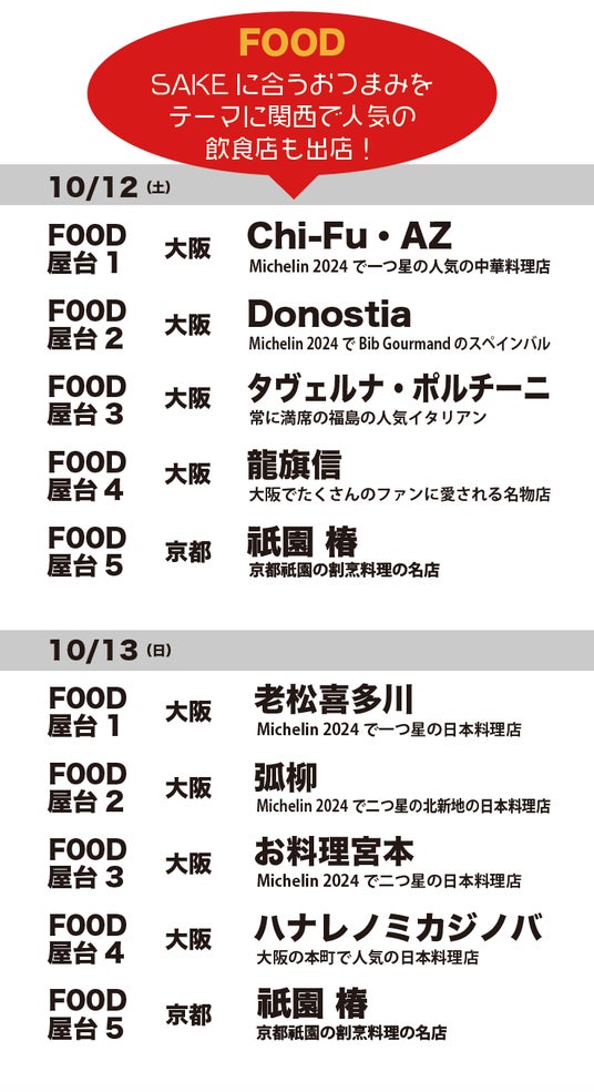 お酒に合うおつまみをテーマにしたフードブースでは、星付きのお店を含む関西で人気飲食店が出店!