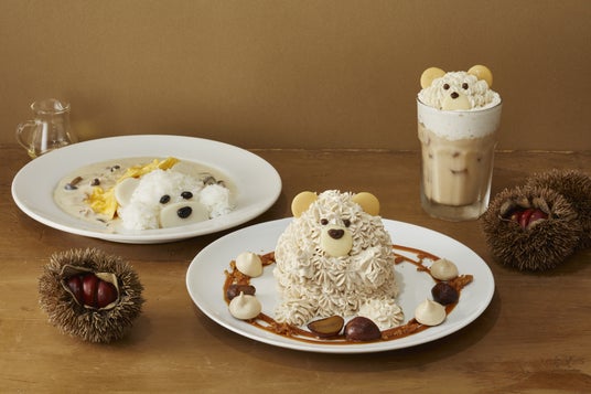 本コラボレーションのラインナップは、クラシックテディをモチーフとした可愛らしいテディベアがデザインされたメインメニュー2種類とドリンクメニューとなります。メインメニューは、「クラシックテディのほうじ茶と和栗クリームスフレパンケーキ」、「クラシックテディのキノコソースオムライス」、ドリンクメニューには、「クラシックテディのほうじ茶マロンラテ」をご用意しました。