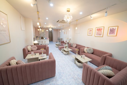 Marble Shisha Loungeは、マーブル柄をアクセントにした大人かわいいテイストの店内です。