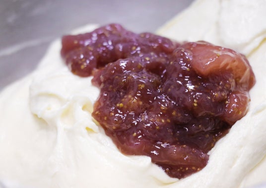 生地にコンポートを練り込み、焼く前に上にものせています。