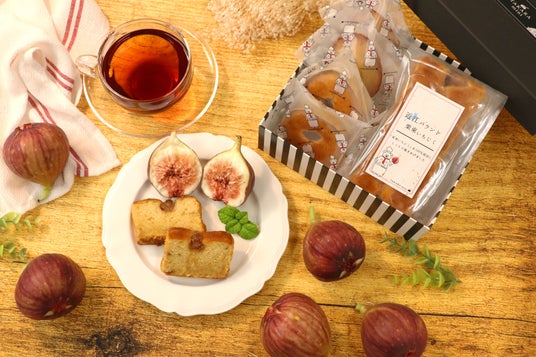 栗東いちじくをふんだんに使用し焼きあげたパウンドケーキは、しっとりとした口当たりで、いちじくの優しい甘さとつぶつぶ食感をお楽しみいただけます。