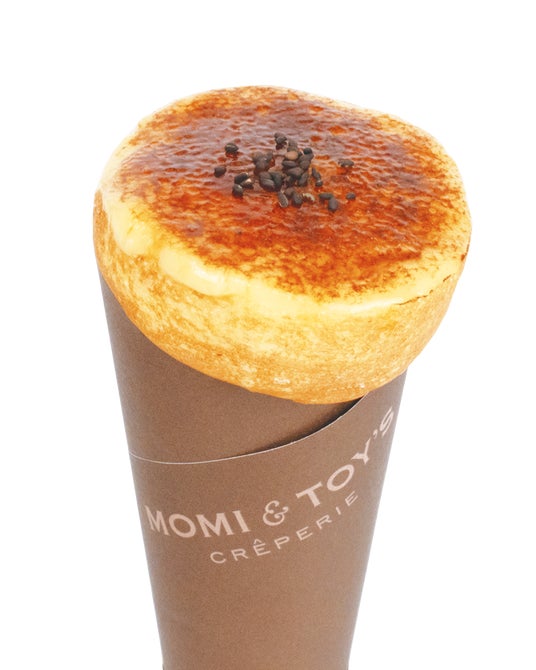 人気の「クレームブリュレ」のクレープと、さつまいもを合わせました。包み込んださつまいもの甘露煮のホクホク感とブリュレのパリッとした食感を楽しめるクレープです。