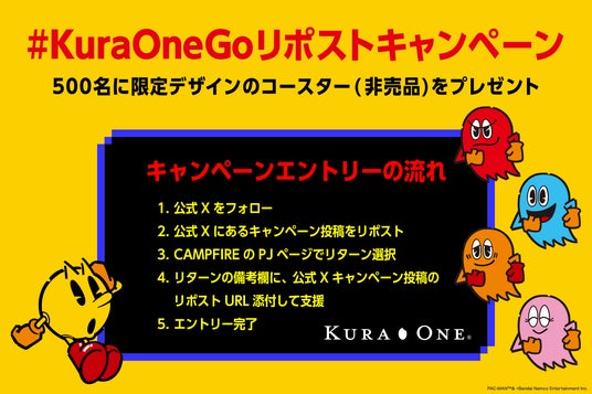 #KuraOneGoのキャンペーン投稿をリポストした支援者の中から抽選で500名様に「限定オリジナルコースター (非売品)」をプレゼントします。