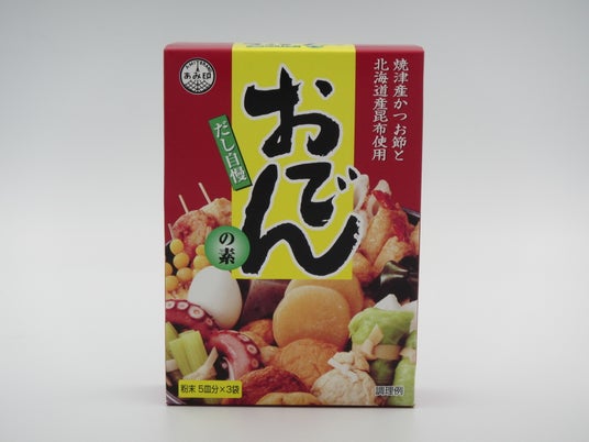 醤油ベースの昆布だしに、かつお節・さば節の節系のうまみを加え、スープに練り物が溶け込んだような深いうま味を、また、ビーフエキスで牛すじ味をそれぞれ再現しました。すまし汁とは一線を画す、おでん具材が溶け込んだような、滋味深い味に仕上げました。