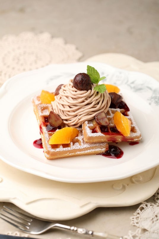 ■商品名・価格: 「栗のモンブランワッフル」 単品1,370円/ドリンクセット1,680円
