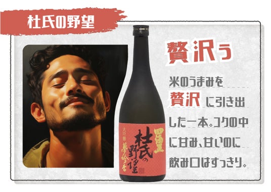 米の旨味の「贅沢ぅ」な味わいが自慢の「杜氏の野望」を飲んで頂いたお客様。