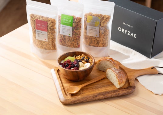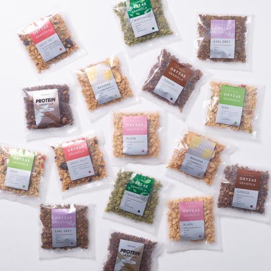 9/1(日)~9/10(火)のオープン期間中、ORYZAE SHOP TOKYOでお買い物していただいた方は、オリゼ公式LINEの登録画面をお見せいただくとお好きなミニグラノーラ1種をプレゼントいたします。
