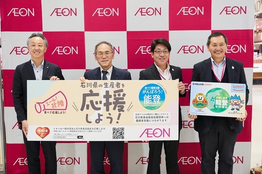 イオンは9月4日(水)より、「イオン」「イオンスタイル」「マックスバリュ」など約800店舗※1にて、令和6年能登半島地震で被災した石川県内の企業や能登の食文化を守る支援につながる「食べて復興支援 がんばろう!能登」のシールを貼付した「トップバリュ」商品計3品目を発売します。