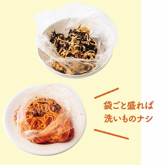 1. スパゲッティは半分に折ってアイラップに入れ、Aを加え(さば缶は缶汁ごと使用)、20分おく。