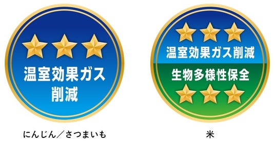 今回、「八百結び(R)プロジェクト」にて栽培された、にんじん、さつまいも、米は、「温室効果ガス削減への貢献」において3つ星の算定結果を得ました(*2)。また同時に、米は、「生物多様性保全への配慮」(現在評価対象作物は、米のみ)において、3つ星評価を獲得しました。
