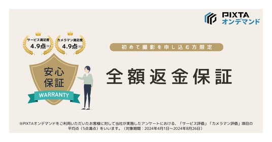 ピクスタ株式会社(東京都渋谷区 代表取締役社長:古俣大介、東証グロース:3416)が運営する法人向け出張撮影プラットフォーム「PIXTAオンデマンド」(https://od.pixta.jp/)では、初めてPIXTAオンデマンドをご利用する企業・個人事業主を対象に、納品写真にご満足いただけなかった場合に返金する「全額返金保証」を開始いたします。
