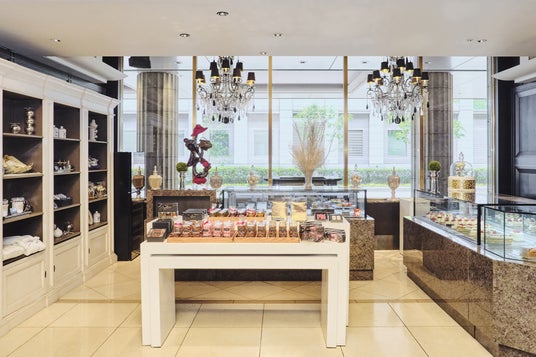 1F ロビーフロアのザ・ショップ N.Y.ラウンジブティックでは、専属のパティシエが手掛けるスイーツや焼き菓子、ホテルオリジナルのタオル、アロマエッセンスなどのお土産品を販売しております。