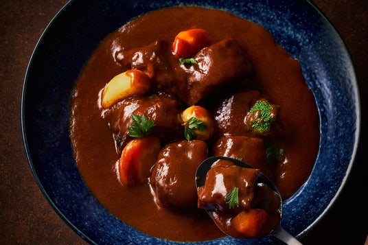 「ビーフシチュー」は、トマトベースにたっぷりの香味野菜と総料理長自らが厳選した牛バラ肉を加え、ホロホロになるまでじっくり丁寧に煮込みました。トマトのシンプルな味わいの中にもまろやかなコクが感じられ、口の中で牛肉や野菜とやさしくとろけるように混ざり合い、素材の旨みが凝縮した奥深い味わいをご堪能いただけます。お食事の際にパンやご飯と一緒にお召し上がりいただくほか、ワインとのマリアージュにもおすすめです。