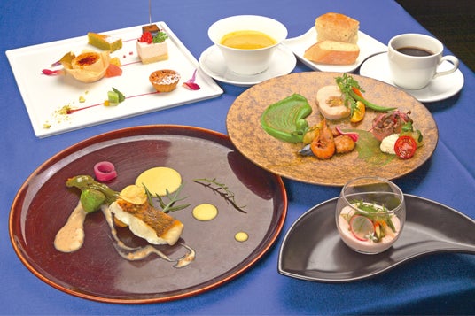 明石海峡大橋と淡路島が間近に見えるロケーションが魅力のホテルでは、すべての料理に“旬の素材”を使用。明石鯛など旬の魚のおいしさを引き出すメイン、デザートなど内容は日によって変わります。