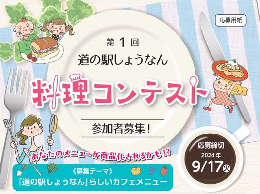 テーマは「道の駅しょうなんらしいカフェメニュー」です。道の駅で思わず食べたくなるメニューや、地元食材を使ったメニュー、道の駅しょうなんをイメージしたメニューなど、皆様の色々なアイディアを募集しています!