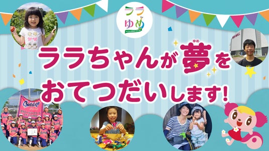 当社が2003年よりスタートした「ララゆめ ~ララちゃんが夢をおてつだいします!~」では、これまでに320を超える子どもたちの夢を叶えるおてつだいをしてきました。「夢を持つことの大切さを伝えたい」という想いから、全国から発想豊かで自由な夢を募集し、厳正な選考の結果選ばれた夢を当社の人気キャラクター「ララちゃん」がおてつだいしています。