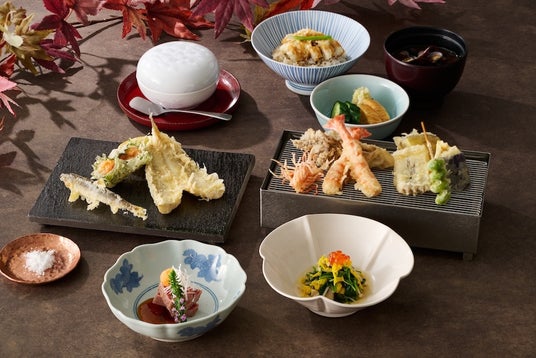 旬の鮭と新鮮ないくらが織り成す土鍋ごはんや、天ぷらからデザートまで秋を存分に楽しめるコース料理、アールグレイの香る柿のソースが口に広がるクレームダンジュなど、秋の味覚を味わうGINZA SIX限定のレストランメニューが登場します。