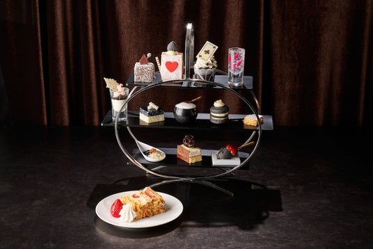 ハートの女王の手下であるトランプ兵をテーマにした、キュートかつシックなアフタヌーンティー。「ハートの兵隊のクッキーサンド」や「ワンスプ-ン黒カレー」など、シェフとパティシエの遊び心が詰まった12種のセイボリーとスイーツ。さらに、名物の苺のミルフィーユも味わえる大満足のセットです。3時間のカフェフリーで、「TWG」の紅茶など15種類以上のラインナップとともにお楽しみください。