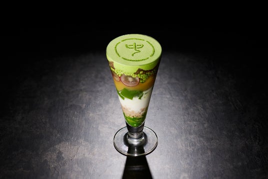 季節の果物、葡萄を使い芳醇な果肉の味わいと、栗のこっくりとした甘みが合わさります。底には、抹茶の飲み方のひとつ濃茶で点てた「成光の昔」。「成光の昔」は当店の抹茶の中でも、コクと深みがあり、キレの良い上品な苦味を楽しめるお抹茶です。上質なお抹茶を秋の味覚とともにたっぷりと味わえるパフェです。