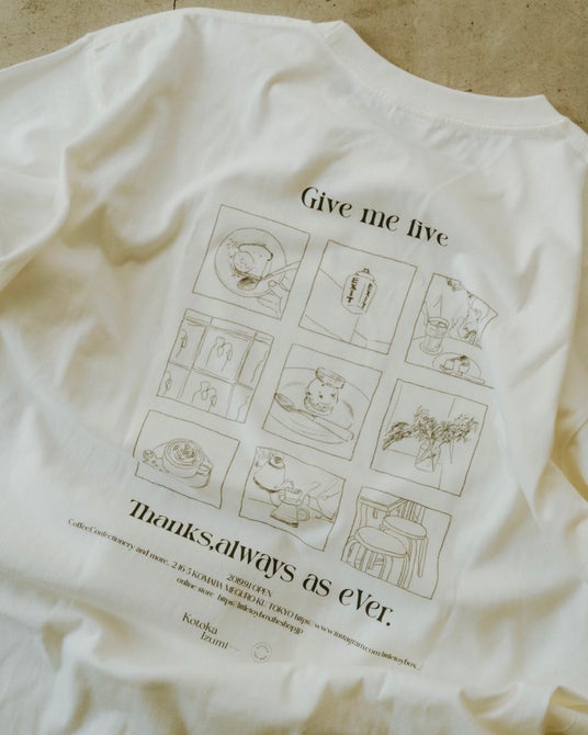 ファッションブランドとのコラボレーションも多数手がけるイラストレーター Kotoka Izumi さんによる、LITTLE TOY BOXの5年間の思い出が詰まった特別デザインTシャツ。これまでの感謝の気持ちを詰め込んだ初めてのオリジナルTシャツを販売します!こちらのTシャツはオンラインサイトでの販売も予定しております。