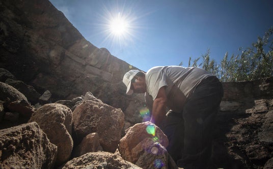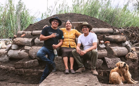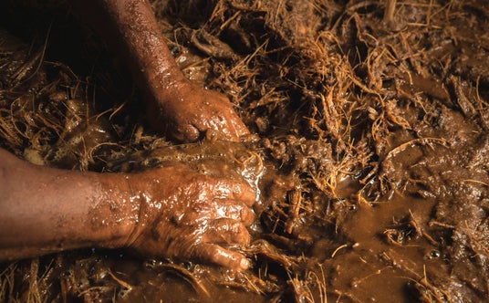 オーブンで約15トンのアガベを1度に蒸し焼きに。大きく重い石やアガベを積み上げ、さらに蒸し焼き後地上へ引き上げる作業は機械を使わず手で行われる大変な作業。働き手たちの腕や手は非常にごつごつとしていて硬い皮に覆われている。