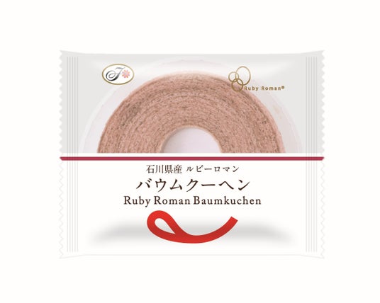 石川県産ぶどう「ルビーロマン」を使用したバウムクーヘンが期間限定で登場します。宝石のような鮮やかな赤色の果実が特徴の「ルビーロマン」のジャムを生地に練り込み、一層一層丁寧に焼き上げました。「ルビーロマン」の上品な味わいをお楽しみいただけます。