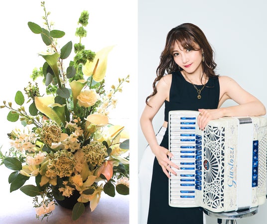 なお、開業4周年のお祝いにふさわしく店内は美しい花々で彩られます。さらにアコーディオン奏者がお客様のテーブルを廻り演奏を披露し、楽しいひとときを演出いたします。「美食・花・音楽」が織り成す“アンサンブル”による特別な夜を、どうぞ心ゆくまでお楽しみください。