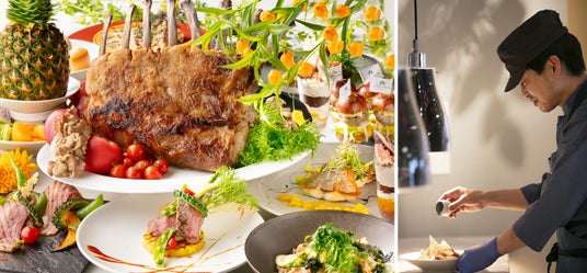 8種類の料理が揃うブッフェは、韓国で話題のグリークヨーグルトを使用したサラダや、旬のサンマを用いた前菜、「style kitchen」のメニューの中で女性からの支持が高いハーブシュリンプなど、彩り豊かな内容です。最終仕上げをお客様の目の前で行う5種類のメイン料理は、シェフが鮮やかな手さばきで仕上げる様子をご覧いただき、オープンキッチンよりお客様に直接ご提供します。中でも「氷温熟成黒豚の骨付きロースト トマホーク」は、骨付き肉のインパクトとともにシェフのダイナミックなカービングにもご注目いただきたい一品です。ライブ感あふれるキッチンを前に、食欲を誘う香りやシェフによる“魅せる”サービス、出来立ての美味しさをご堪能ください。