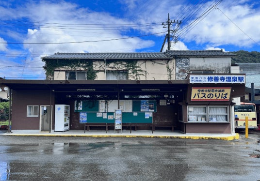 バスのりば「修善寺温泉」は、ミシュラン・グリーンガイド・ジャポンで2つ星評価を得ている修禅寺や竹林の小径など、伊豆を代表する観光スポット「修善寺温泉街」の玄関口です。国内外のお客さまに主に観光利用いただく場所ですが、築43年のバスのりばは、趣はありながら、待合スペース・お手洗いが老朽化していました。