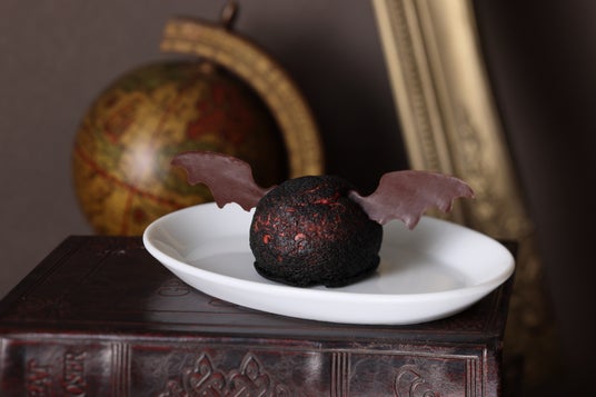 深い闇の中から現れる使い魔をイメージしたブラックシュークリーム。中のキャラメルパンプキンカスタードクリームの濃厚さと甘さが外見と対照的で、使い魔のミステリアスな雰囲気を強調します。