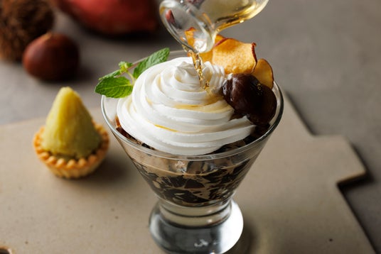 栗リキュール、コーヒーゼリー、チョコレートラム、芋チップス、マログラッセ、焼き芋焼酎、芋ペースト 他