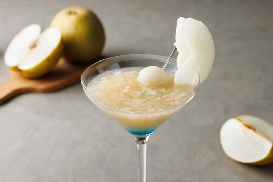 季節の梨、ジン、梨リキュール、ブルーキュラソー