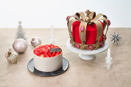 特別な日にぴったりの王冠をイメージしたクリスマスケーキ。パティシエの手作りで精巧に作られた王冠は全てチョコレートで出来ています。王冠の中には、むらおか農園の「王様のいちご」が輝く宝石のようにたっぷりと飾られています。マスカルポーネとホワイトチョコレートムース、ラズベリージュレ、アーモンドのビスキュイなどさまざまな味わいの層が折り重なった至極の一品です。