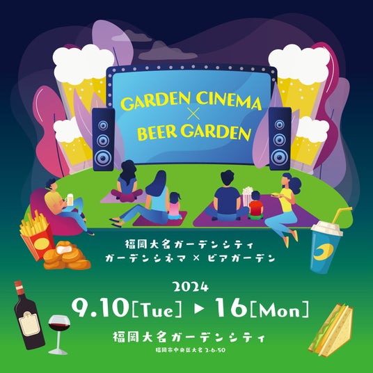 星空の下、映画鑑賞とビアガーデンを楽しめる「福岡大名ガーデンシティGARDEN CINEMA×BEER GARDEN」(主催:西日本新聞社、西日本新聞イベントサービス)を福岡大名ガーデンシティで初開催します。