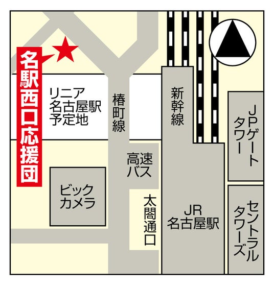 ■「勝男 名駅西口応援団」について 今回オープンする名駅西口応援団は、JR名古屋駅西側の椿町地区、太閤通口(新幹線口)から歩いてすぐの場所というとても便利でご利用しやすい場所でのオ-プンです。ESCA地下街のE7出口を上がればもう目の前が勝男です。この付近は名古屋駅前ということもあり、ビジネスホテルが多く、リニア中央新幹線の名古屋駅も目下建設中で、今後さらなる発展が予想される地域でもあります。