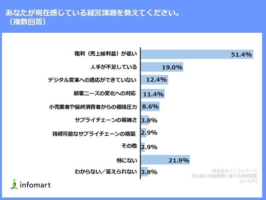 - 現在感じている経営課題、半数以上が「粗利(売上総利益)が低い」