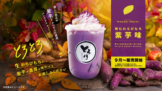 紫芋の自然な甘みとバニラアイスのコクで、秋の味覚を感じる「飲むわらびもち紫芋」が期間限定で登場!
