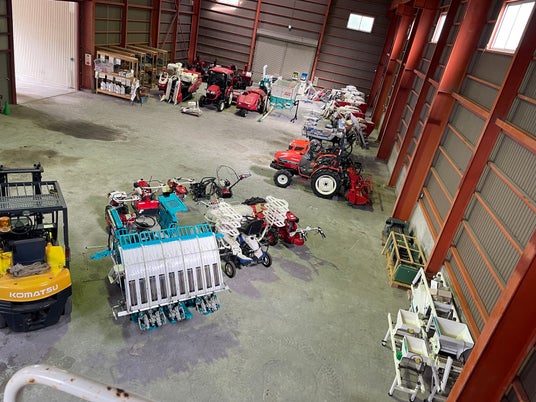 中古の農機具は比較的安価で手に入れられるイメージがありますが、中には新品に近い高額な商品もございます。そういった農機具が雨ざらしの状態で販売されているお店を目にすることが少なくありません。農機具王長野店では、お客様に購入していただいたからには、農機具をこの先10年、20年と長くご使用いただきたいという想いがあります。長く農機具をご使用いただくためには保管方法が重要です。そのため、当店では室内保管にこだわっており、店舗拡大により多くの農機具の室内保管が可能となりました。また、農機具の機能も大事ですが、やはりが見た目や状態の良さも重要であり、室内保管であれば見た目や状態の劣化も防ぐことができます。