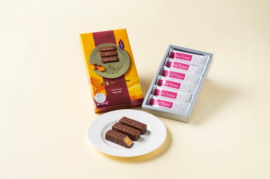 安納芋のさつまいもフィリングとサクサクのパイをくちどけの良いミルクチョコレートで包み込みました。