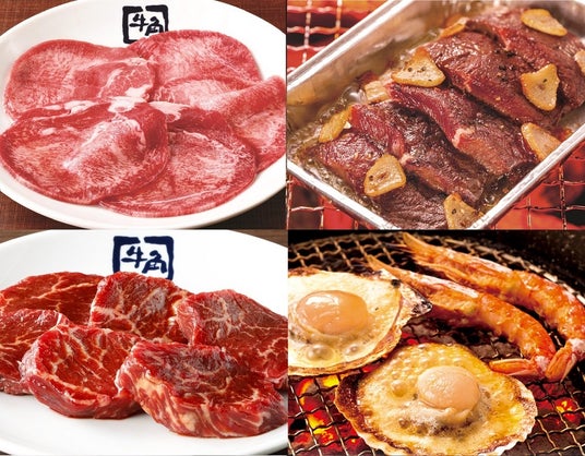 牛タン塩や赤身ステーキ、厚切りミノや殻付きホタテなど、全100品が注文できます。
