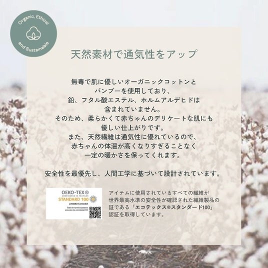 モロー反射を和らげることで赤ちゃんの眠りをサポートするオーガニックコットン素材のスワドル。伸縮性のある生地なので、赤ちゃんが腕も足も自由に動かせます。お母さんのお腹の中の環境に似たフィット感で優しく包むことで、安心安全に眠ることが出来ます。