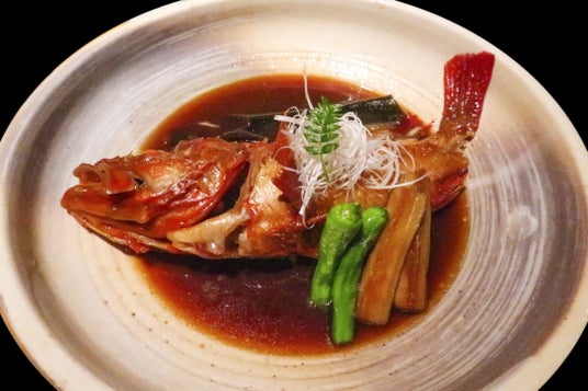 キンキ(キチジ)は深い味わいと豊かな脂が特徴で、一度食べるとやみつきです。当館料理長が、丁寧に下ごしらえし、煮付けダレでじっくりと煮込んでおります。お口に入れた瞬間、旨味が広がり、心地よいコクと香りが口いっぱいに広がります。